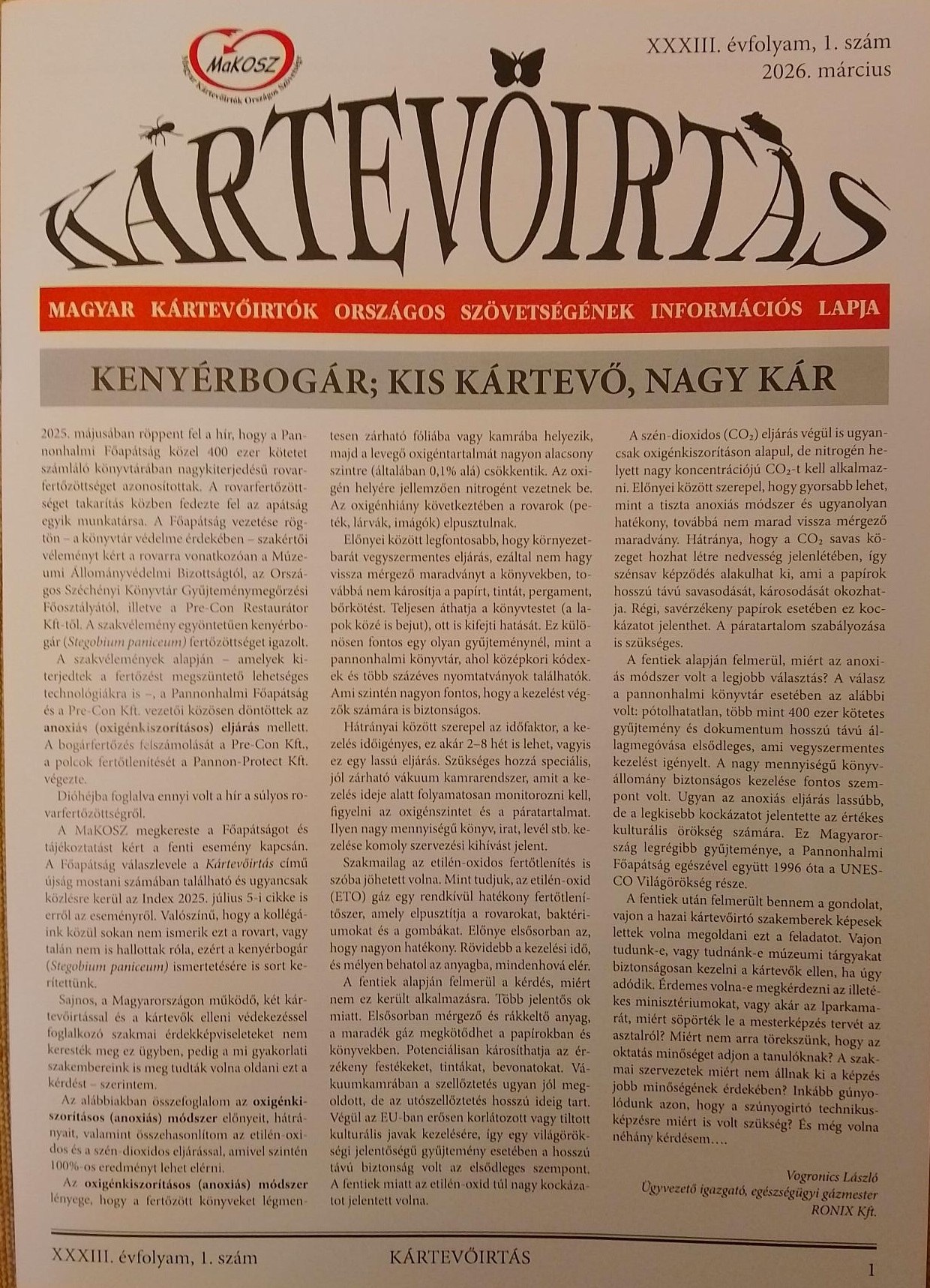 a Magyar Kártevőirtók Országos Szövetségének Információs Lapja